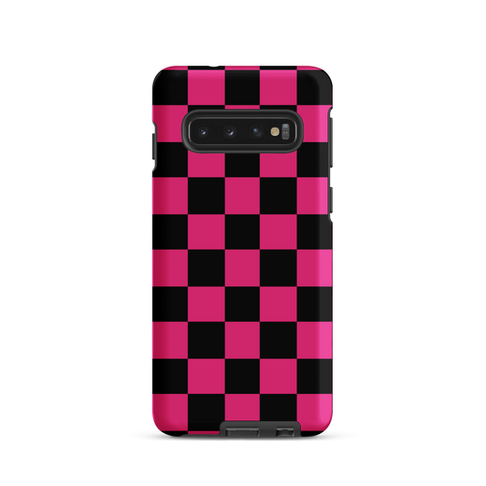 Hot Pink & Black Checkerboard Samsung Case — Trendy Retro Aesthetic, Protective & Lightweight